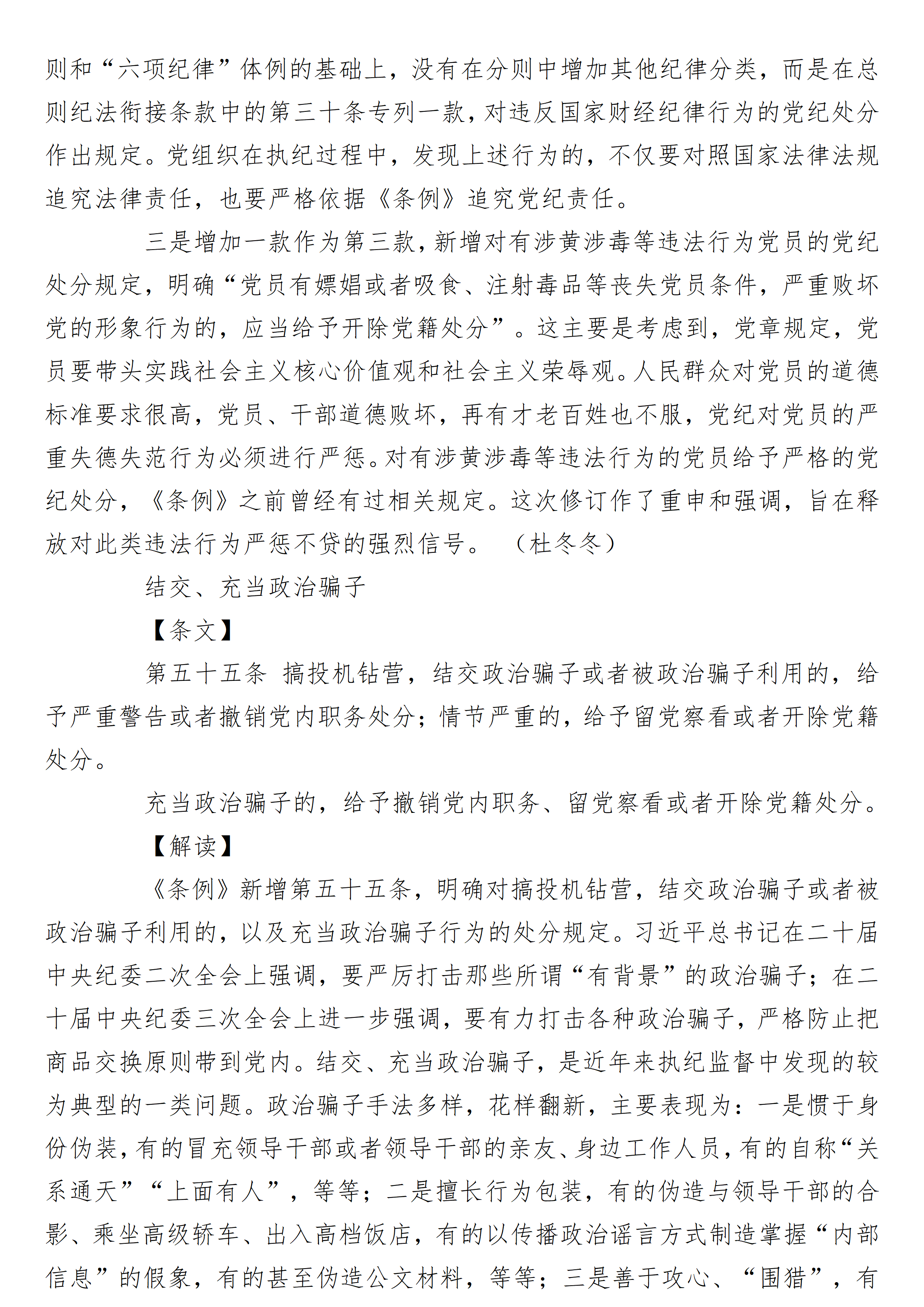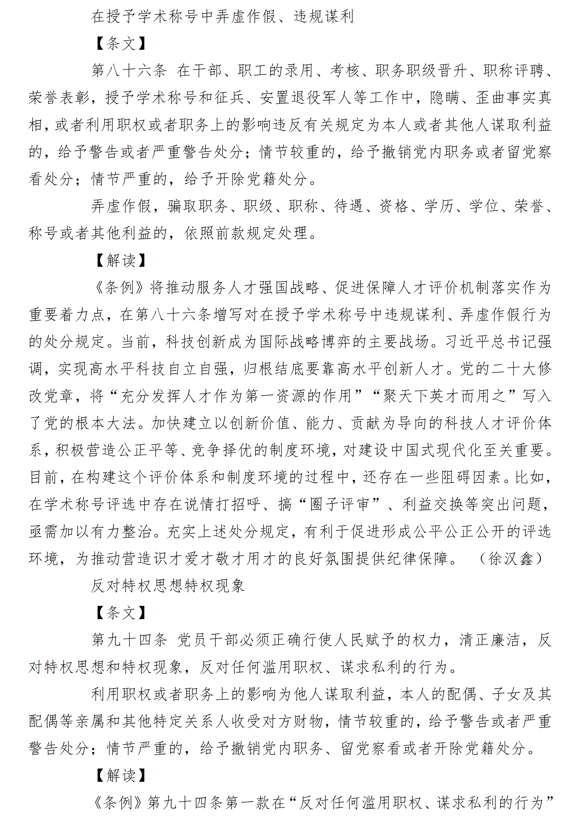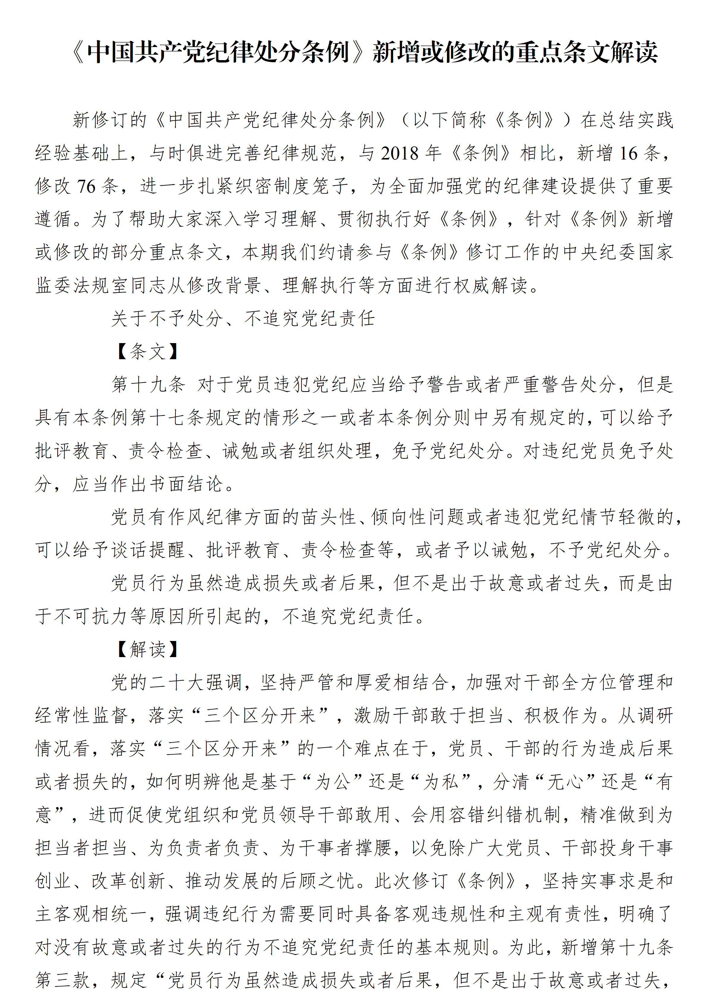 《中国共产党纪律处分条例》新增或修改的重点条文解读