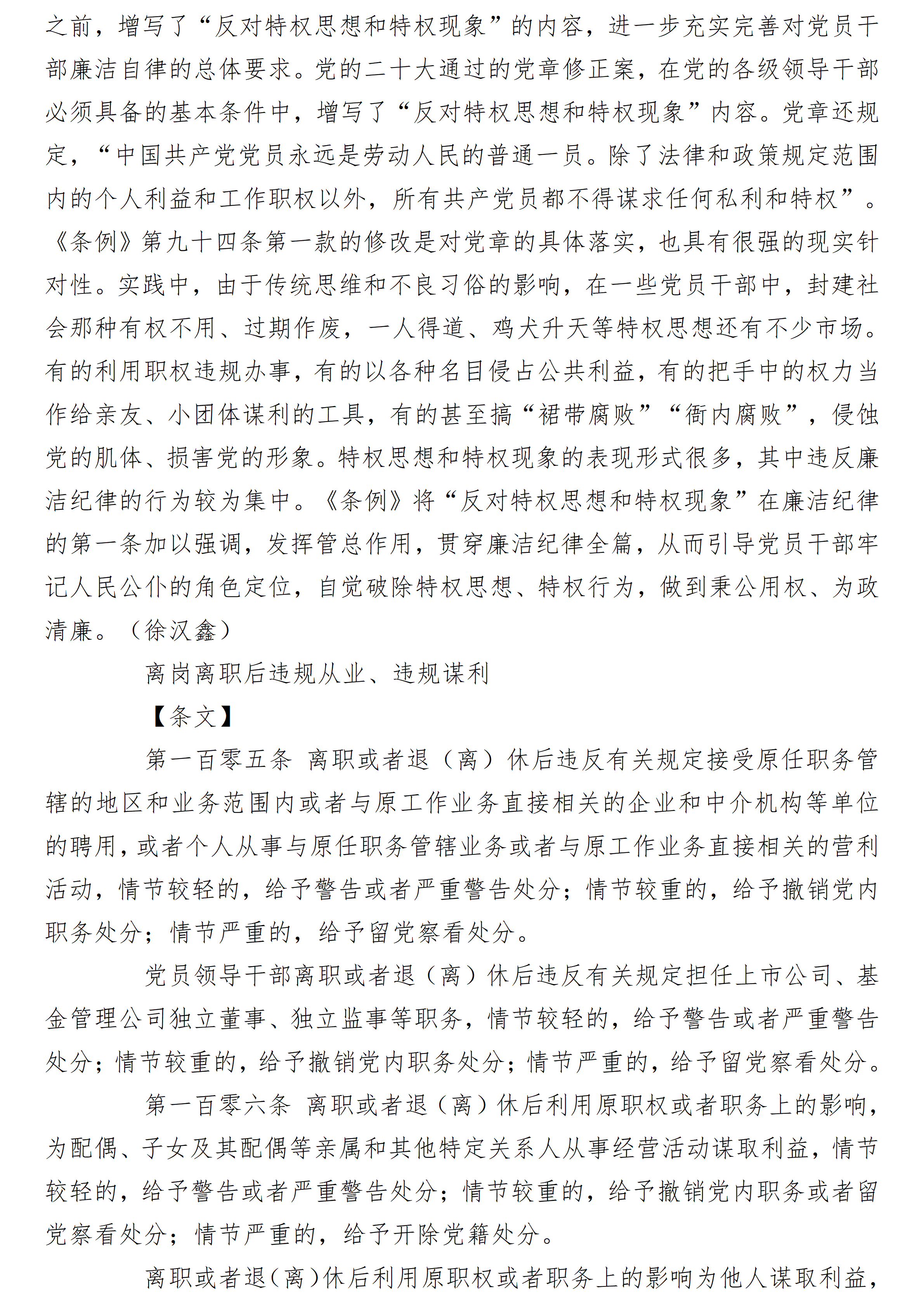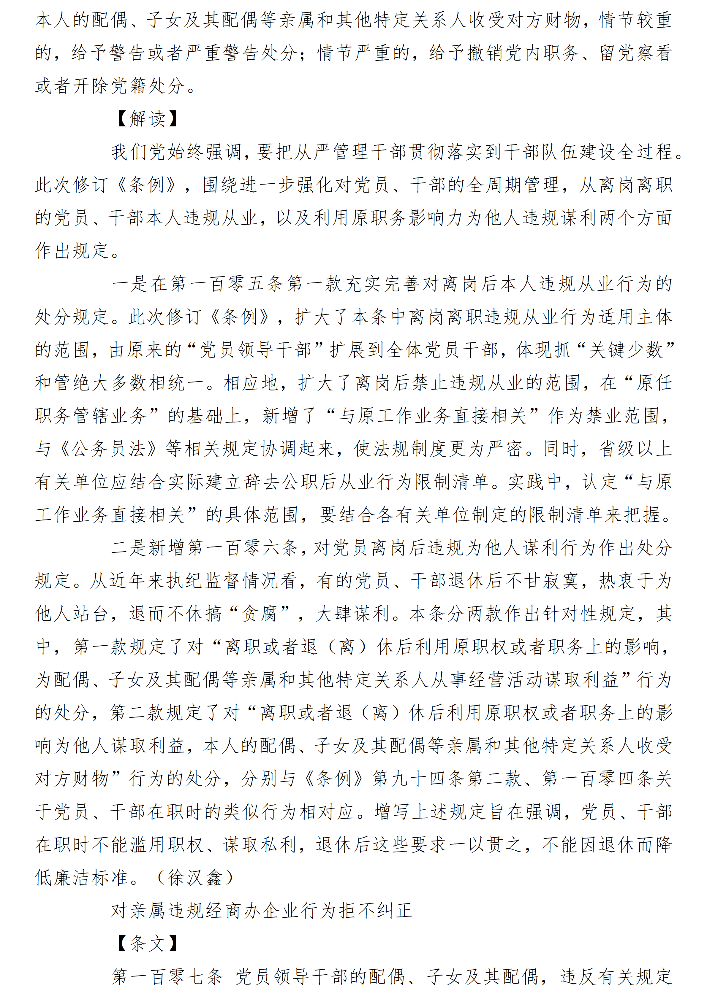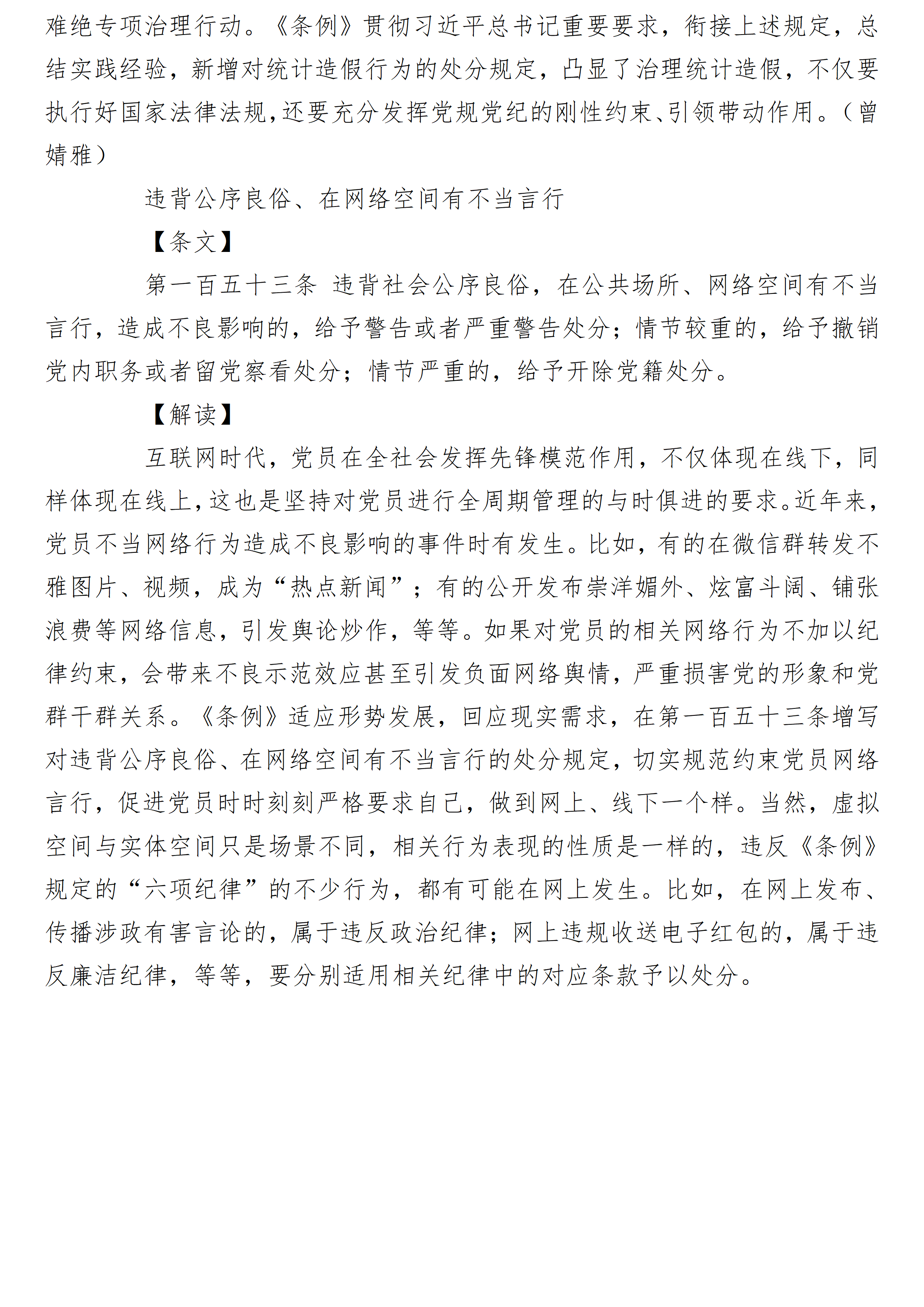 《中国共产党纪律处分条例》新增或修改的重点条文解读