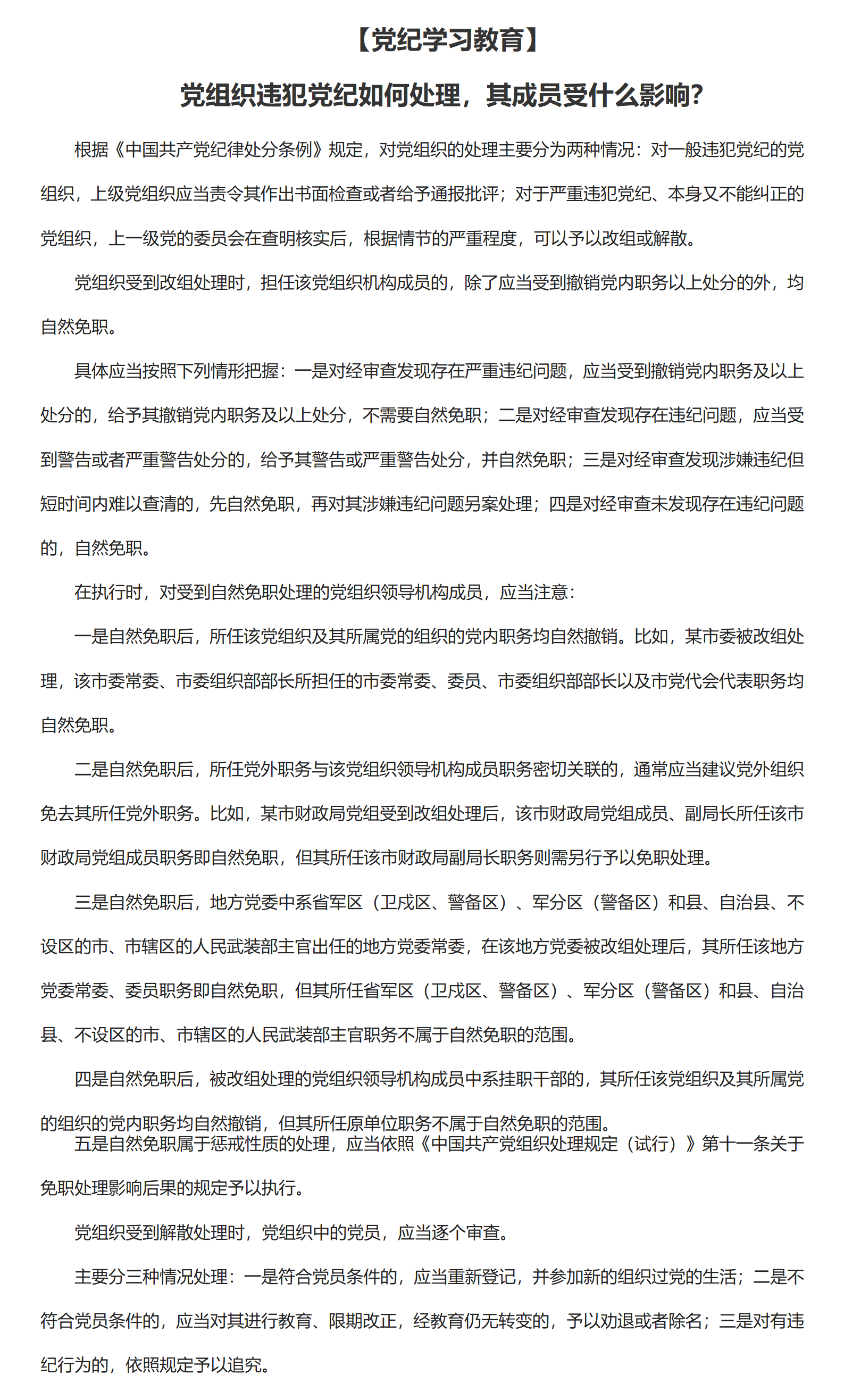 第2期:【党纪学习教育】党组织违犯党纪如何处理,其成员受什么影响?
