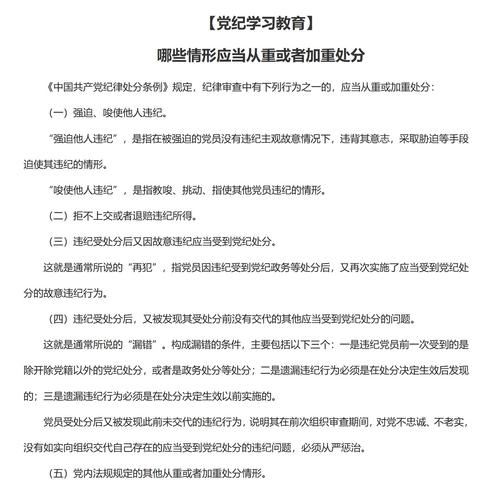第4期:【党纪学习教育】哪些情形应当从重或者加重处分