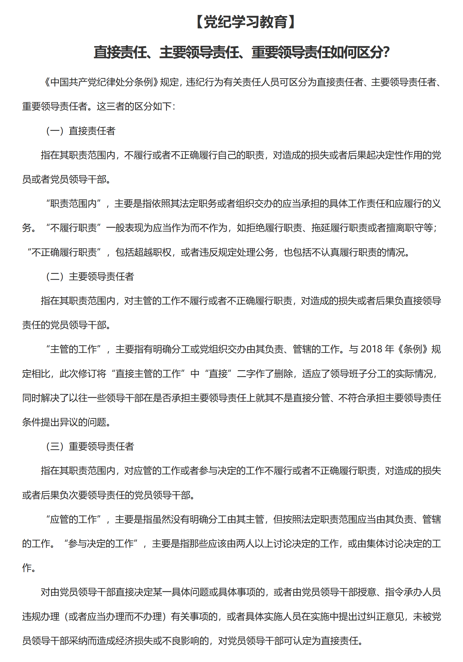 第7期:【党纪学习教育】直接责任、主要领导责任、重要领导