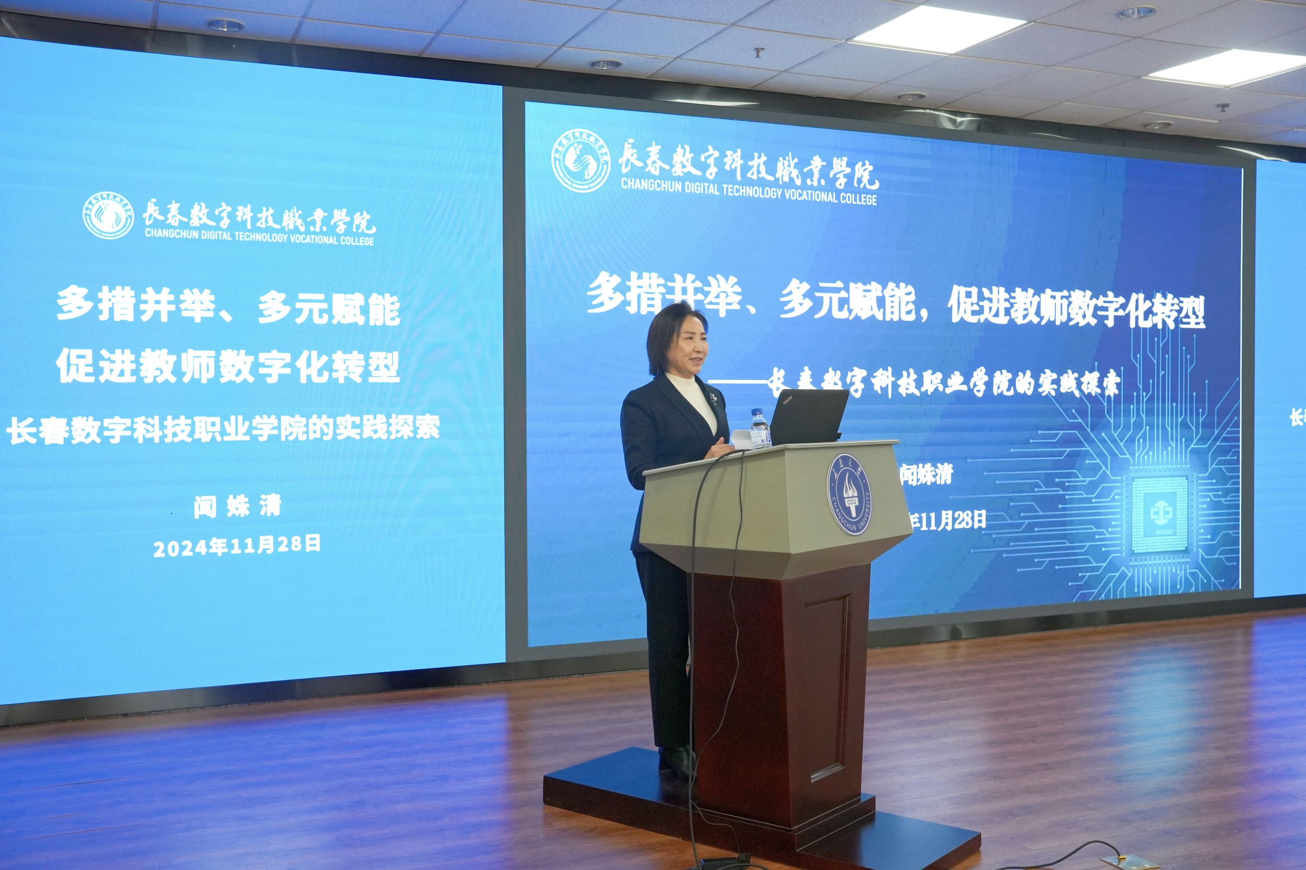 2024年11 月 28 日,吉林省高等教育学会 2024 年学术年会暨学者论坛在亚洲色图召开,省内各高校负责人、专业委员会负责人以及高教教师、科研工作者代表约 140 人参加了会议。校长闻姝清受邀在学者论坛做了题为《多措并举、多元赋能,促进教师数字化转型》的报告。