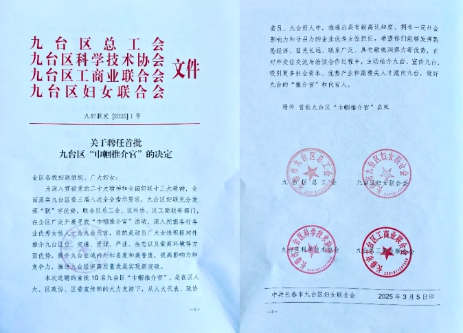 巾帼展芳华|我校徐超时董事长受聘九台区首批“巾帼推介官”