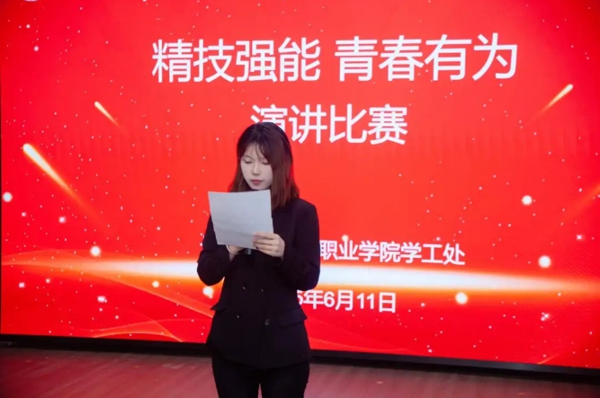 在学校“技炫青春,创芯未来”职教活动月的热烈氛围中,一场汇聚青春力量与技能理想的盛宴精彩上演。6月11日,由学生工作处主办的“精技强能,青春有为”主题演讲比赛圆满收官。这场比赛作为职教活动月的重要组成部分,承载着激发青年学子钻研专业技能、勇立时代潮头的重要使命,来自各学院的15位青年才俊,以铿锵之声、凌云之志,生动诠释了新时代职业院校学子“以精湛技艺立身、以卓越才能报国”的壮志豪情,为职教活动月增添了浓墨重彩的一笔。