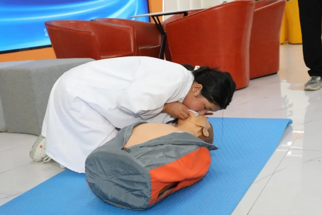 智慧服务学院匠心独具,陶艺、剪纸及废旧材料再生工艺品传递绿色理念;“智护生命 '救'在身边”主题活动成为亮点,师生现场演示生命体征测量与心肺复苏技能,紧张激烈的CPR技能比赛更将“技艺服务民生”的宗旨诠释得淋漓尽致。
